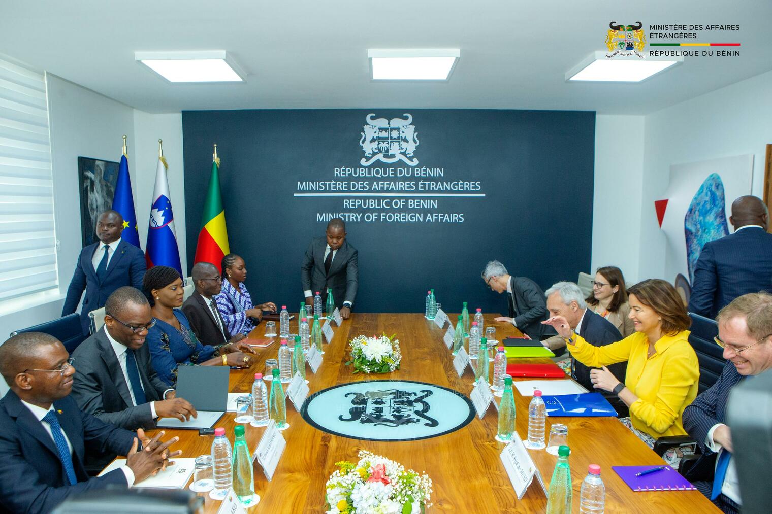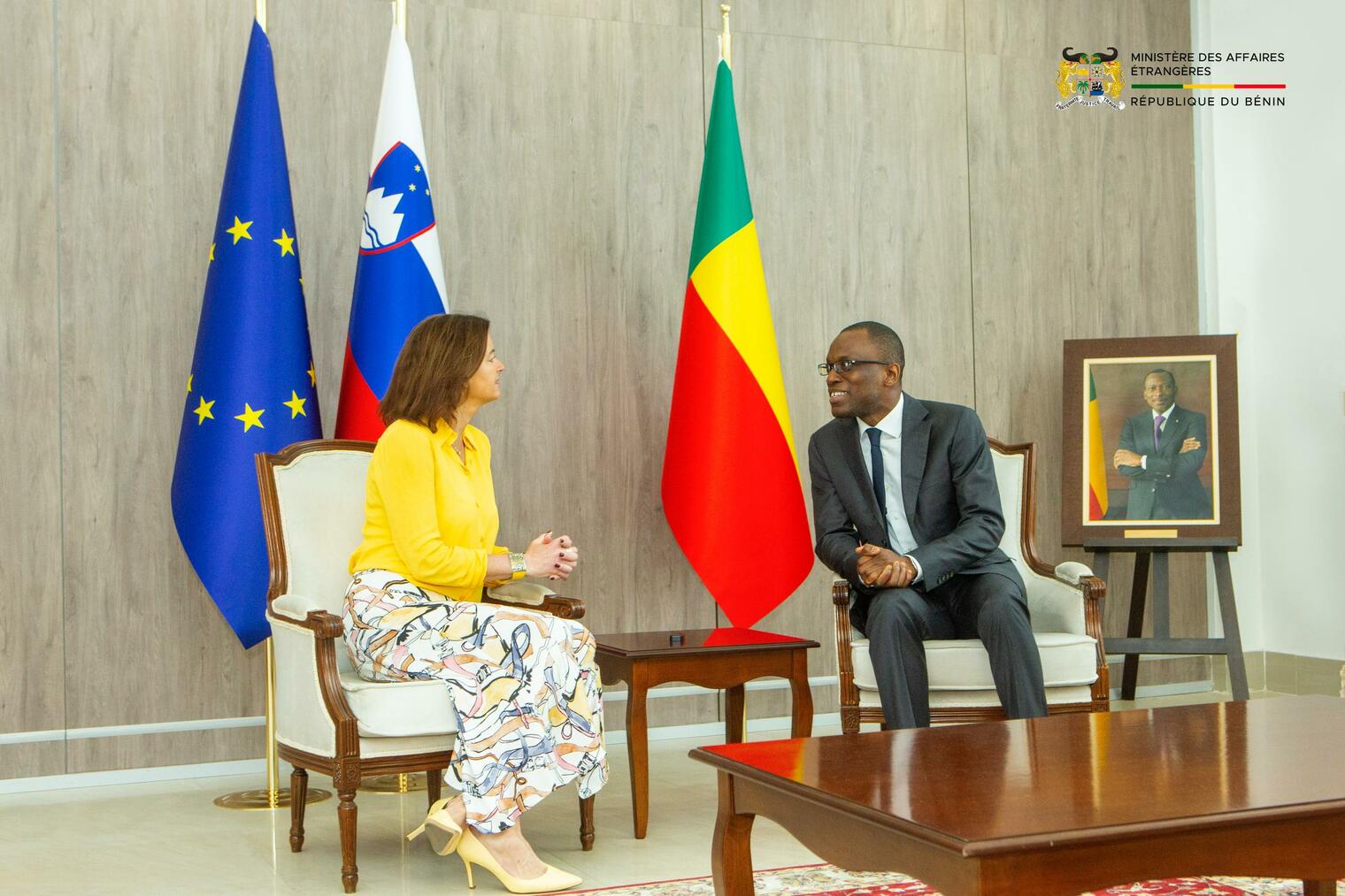 Le Ministre des Affaires étrangères, M. Olushegun Adjadi BAKARI a reçu ce lundi 07 avril 2025, son homologue de la Slovénie, Madame Tanja FAJON. La rencontre s’inscrit dans le cadre de la visite de travail de la cheffe de la diplomatie slovène au Bénin. À l’issue des échanges, les deux pays ont signé un Mémorandum d'Entente sur les consultations politiques et diplomatiques.