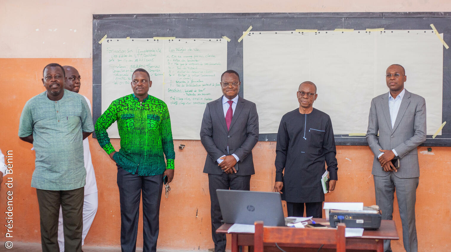 Accompagné du Directeur Général de l'ADET, Monsieur Fructueux Sylvain AHO, du Directeur Général de l'ANPE, Monsieur Urbain AMEGBEDJI et d'autres cadres, le Directeur de Cabinet, Monsieur Garba AYOUBA, a pris le temps d’échanger avec les jeunes afin de s’imprégner de leurs expériences et des enseignements reçus au cours de cette formation. L’initiative s’inscrit dans la dynamique de réforme du système éducatif béninois avec une attention particulière portée sur la professionnalisation, à l’insertion socio-professionnelle des jeunes, et à l’adéquation formation-emploi.