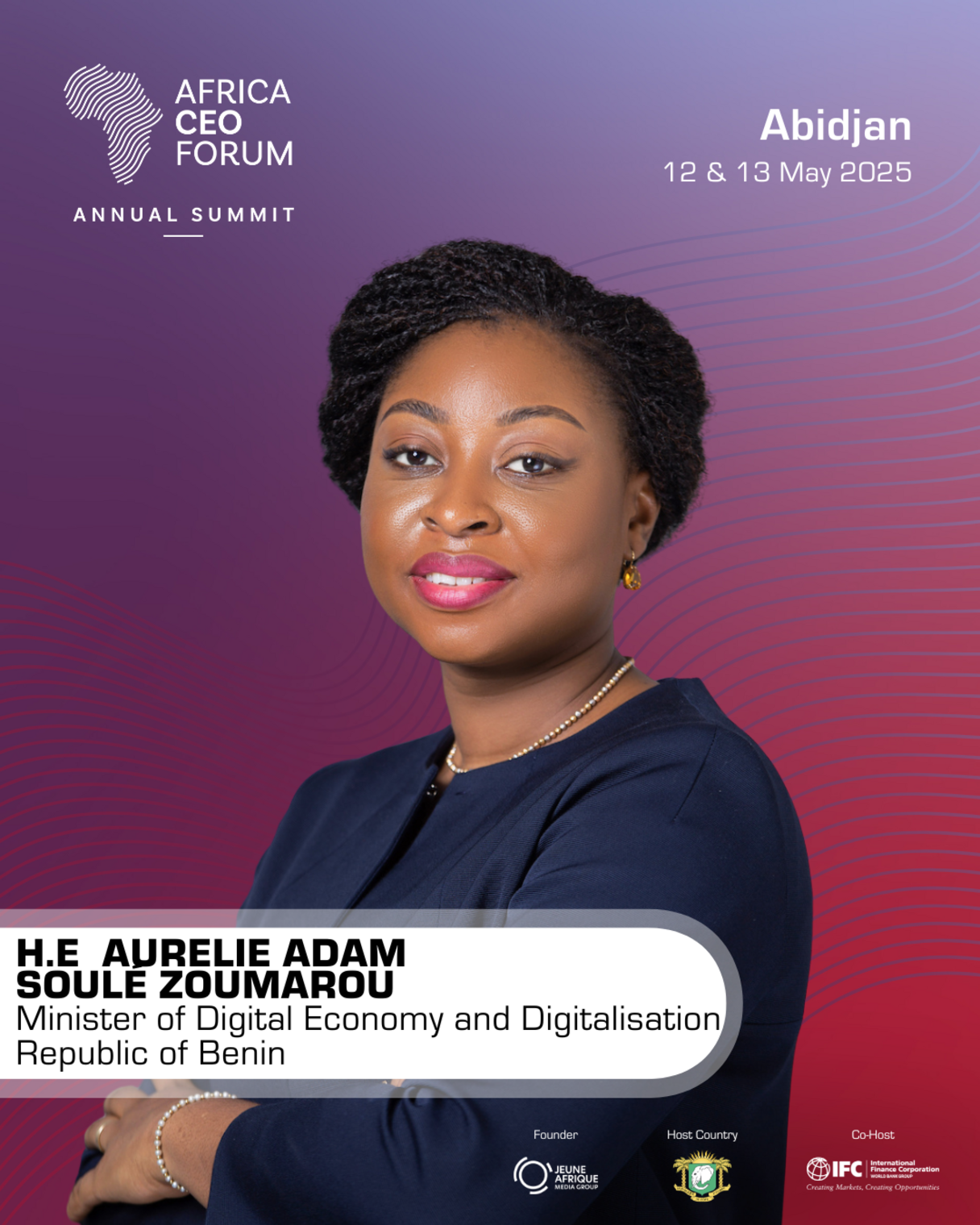 La délégation béninoise à l’Africa CEO Forum les 12 et 13 mai 2025 sera marquée par la présence de Madame Aurelie ADAM SOULÉ ZOUMAROU, Ministre du Numérique et de la Digitalisation, qui portera la vision du Bénin en matière de transformation digitale et d’innovation technologique.