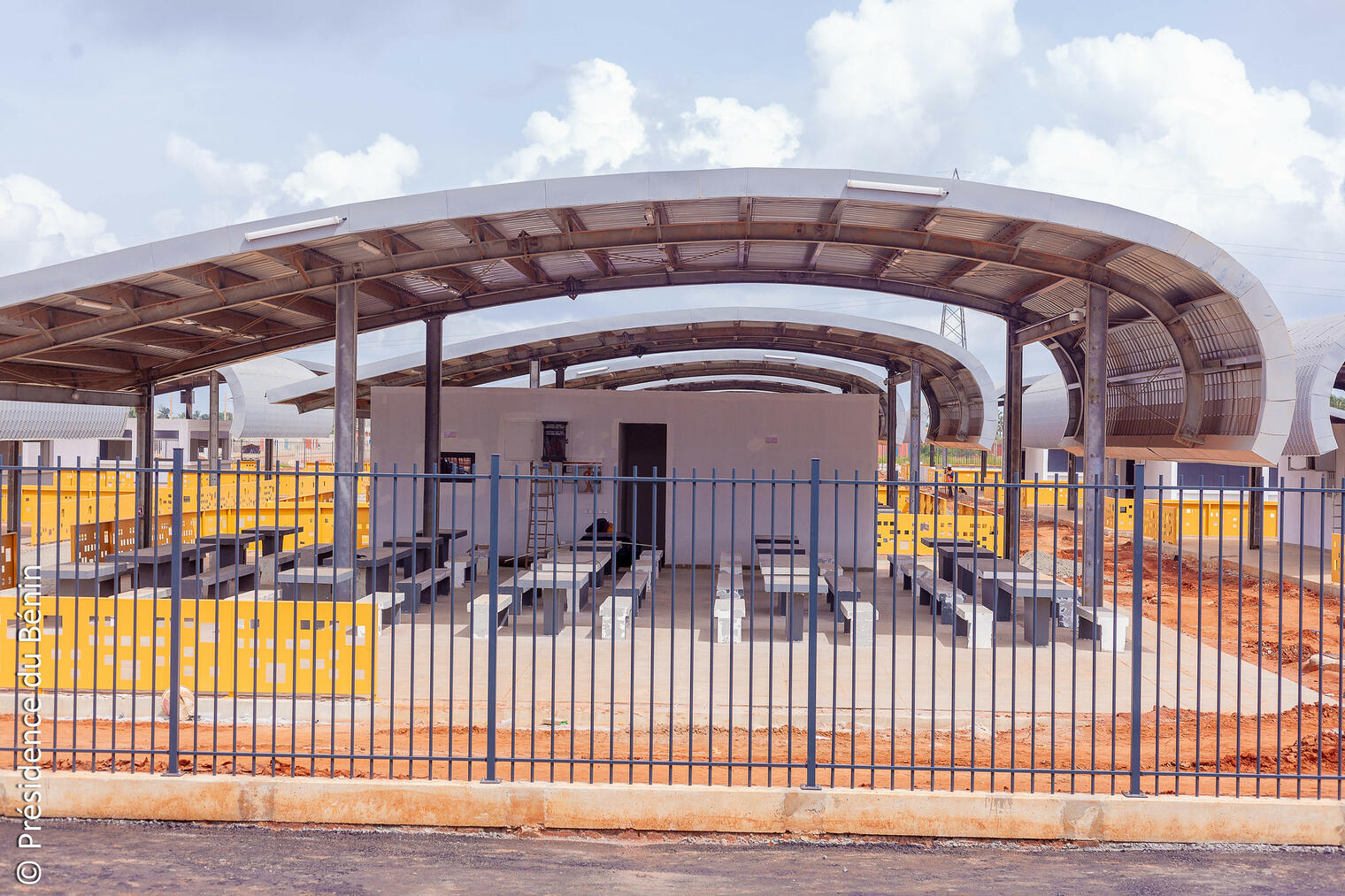 Accueillis par le Préfet Jean-Claude CODJIA, les autorités locales et les responsables du chantier, les Ministres Conseillers ont pu constater l’état d’avancement des travaux qui est à un taux d'exécution global de 92%. Ils ont, par la même occasion, pu échanger avec les parties prenantes sur les dernières phases à franchir avant la mise en service effective du marché projetée pour la fin du mois de décembre 2025.
