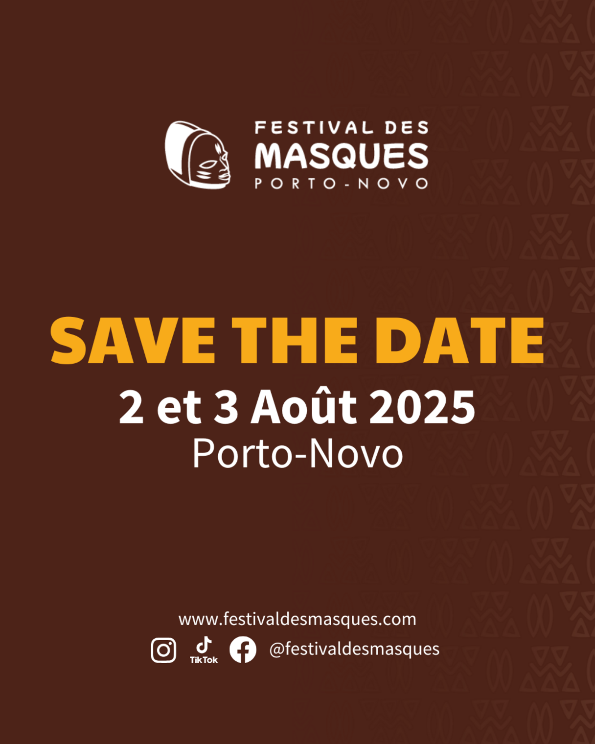 Après une première édition couronnée de succès, le Festival des Masques revient pour sa deuxième édition les 2 et 3 août 2025 à Porto-Novo. Organisé pour la première fois en août 2024, l’événement avait rassemblé près de 40.000 visiteurs en trois jours selon l’Institut National de la Statistique et de la Démographie (INStaD), suscitant un engouement sans précédent autour des traditions des masques Vodun et profanes. Véritable célébration du patrimoine immatériel béninois, le festival a su imposer Porto-Novo comme un nouveau pôle culturel de premier plan. En 2025, le rendez-vous s'annonce encore plus vibrant, renforçant l’ambition de faire du Festival des Masques une référence incontournable en Afrique et dans le monde.