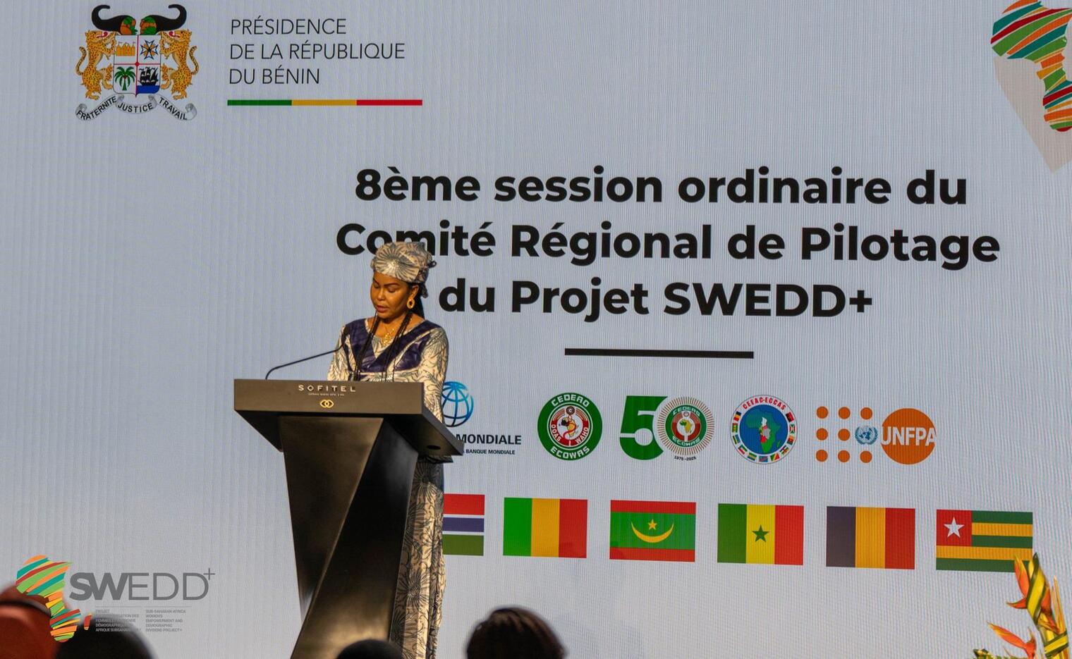 Du 02 au 04 juillet 2025, le Bénin a abrité à Cotonou, la 8ème Session du Comité Régional de Pilotage (CRP) du Projet SWEDD+ (Autonomisation des femmes et dividende démographique au Sahel élargi), réunissant les Ministres en charge du projet, les Experts nationaux, ainsi que les partenaires techniques et financiers. Coordonné par le Ministère béninois des Affaires Sociales et de la Microfinance, cet évènement stratégique marque une étape décisive dans le repositionnement régional du projet SWEDD élargi à de nouveaux pays.
