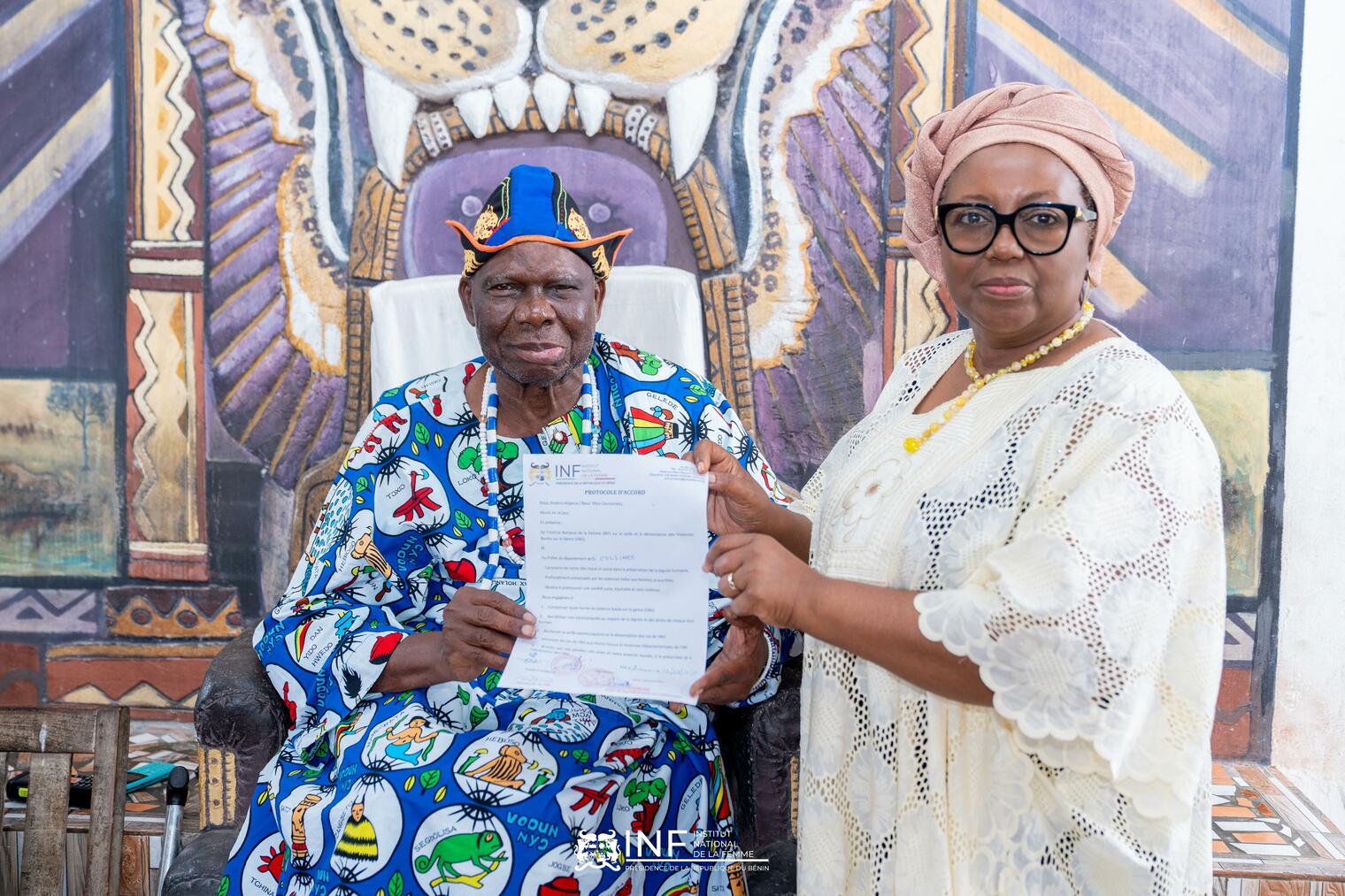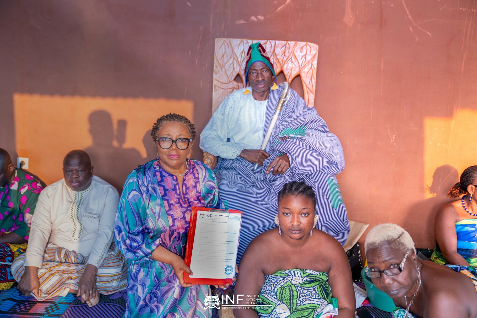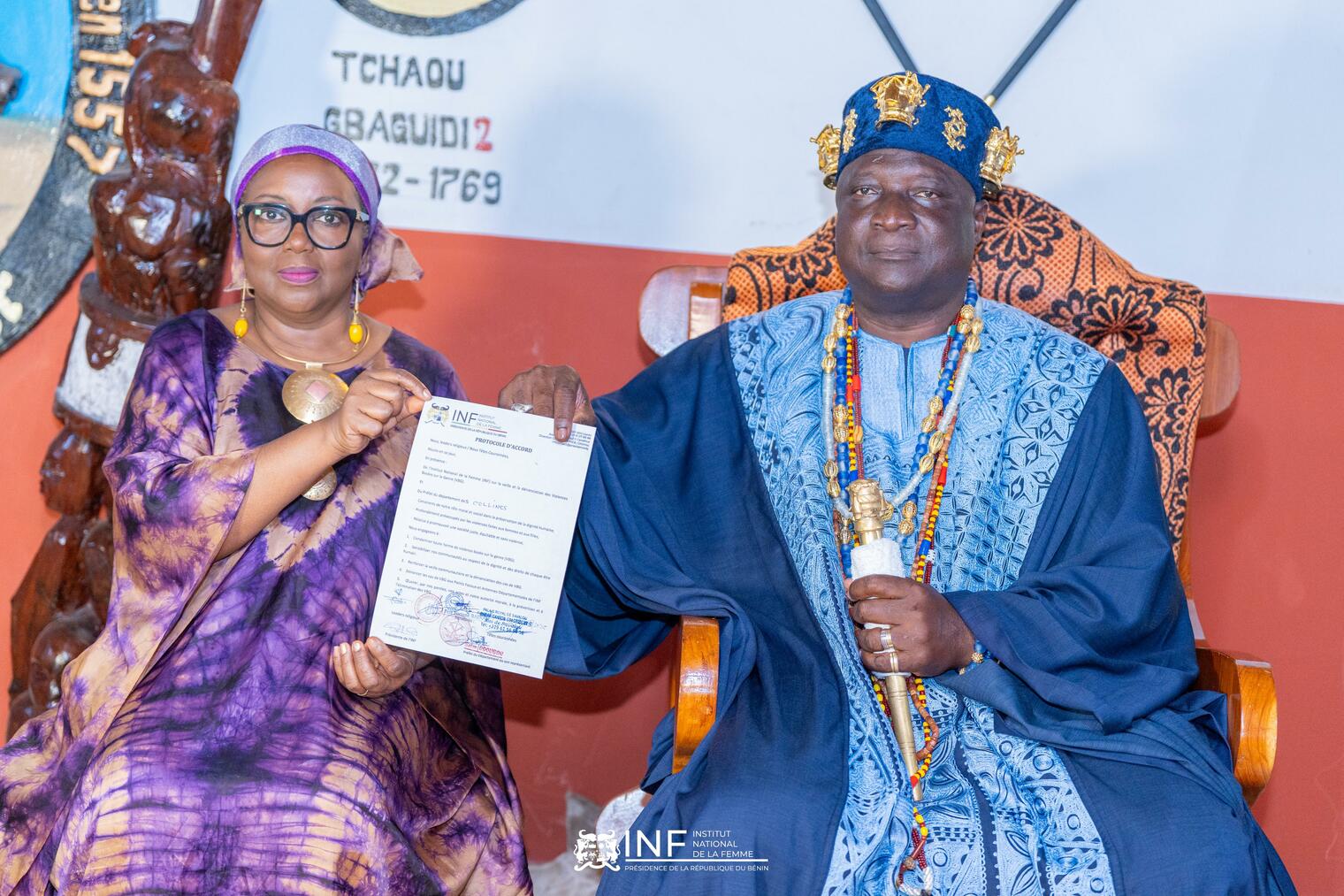 À Savalou, la présidente a été reçue par le Roi Dada Ganfon GBAGUIDI XV et sa Cour. Le monarque a affirmé son engagement pour l'émancipation de la femme, ayant déjà mis en œuvre des initiatives pour la protection des femmes et des filles depuis son accession au trône. Ce soutien royal renforce la légitimité des actions de l'INF sur le terrain et facilite l'acceptation de son message.
