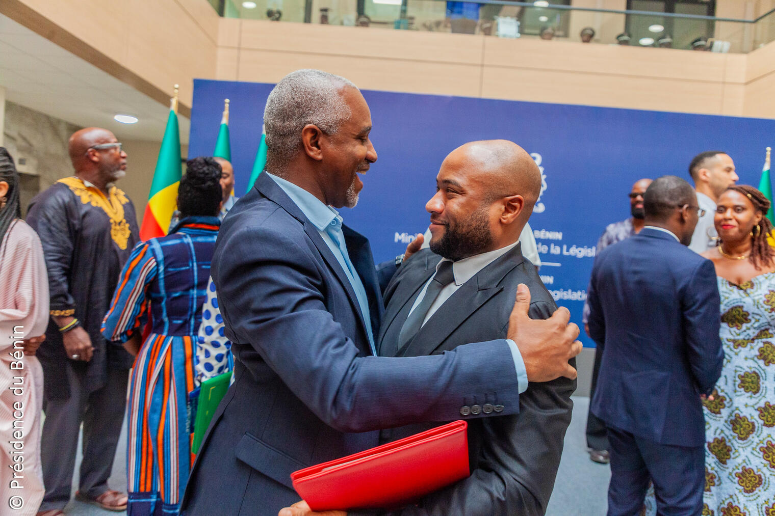 La cérémonie a réuni plusieurs autorités gouvernementales de premier plan, notamment le Garde des Sceaux, Ministre de la Justice et de la Législation, Monsieur Yvon DETCHENOU, ainsi que le Ministre des Affaires étrangères, Monsieur Olushegun ADJADI BAKARI. Leur présence illustre l’importance juridique, diplomatique et symbolique accordée par l’État béninois à cette démarche, qui s’inscrit à la croisée du droit, de la mémoire et de la coopération internationale.