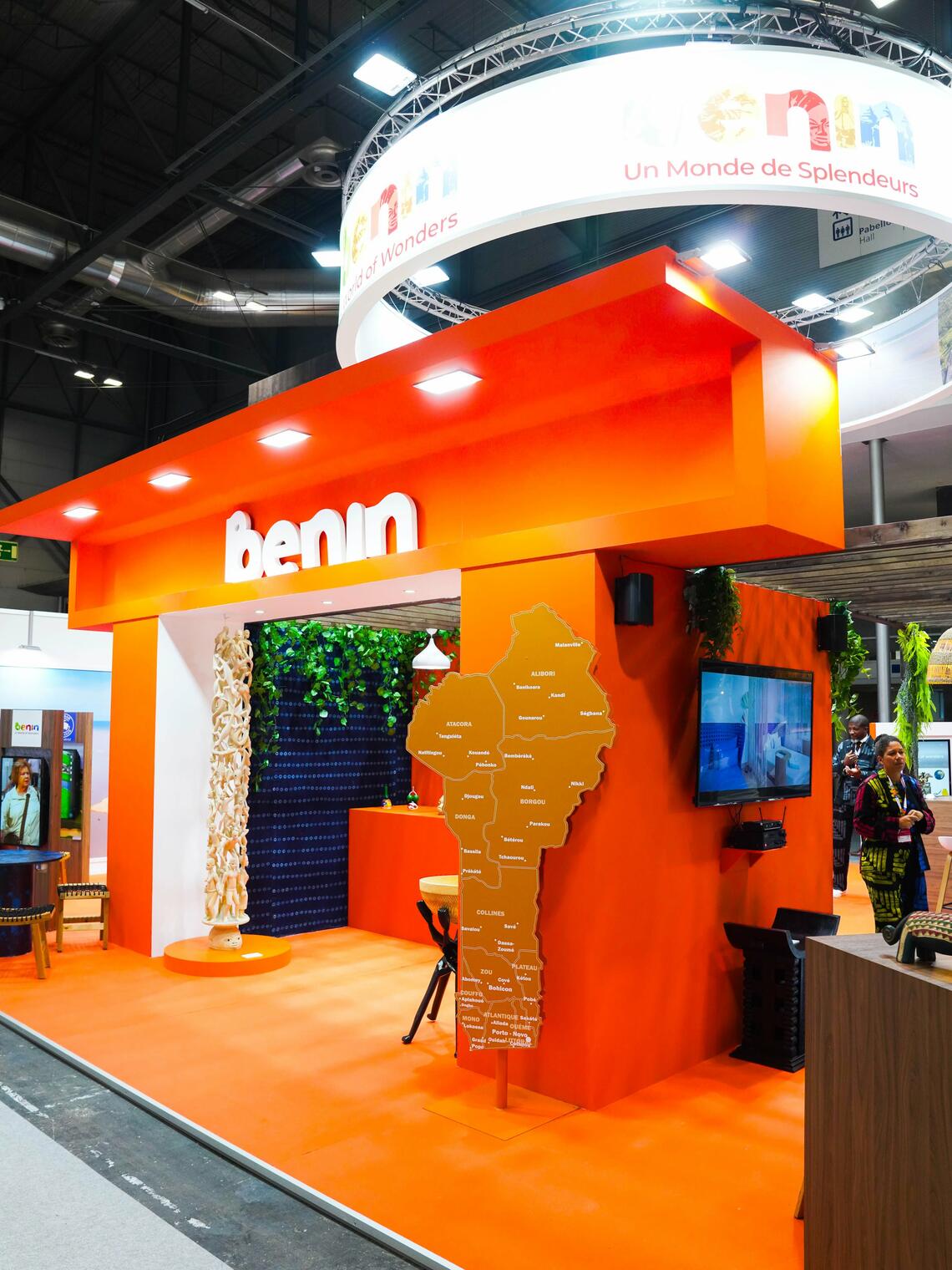 La scénographie a mis en lumière les grandes composantes de l’offre : art et culture, nature, sport & balnéaire, histoire et mémoire, patrimoine & traditions, ainsi que le MICE (tourisme d’affaires, événements et congrès). Cette approche a permis de présenter un Bénin pluriel, capable de répondre à des attentes variées : voyages culturels et créatifs, circuits nature, séjours balnéaires, découvertes patrimoniales et immersions dans les traditions, mais aussi accueil d’événements et de rencontres professionnelles. Le pavillon a ainsi incarné la promesse de la destination : une terre d’émotions, de transmission et d’expériences profondément humaines.