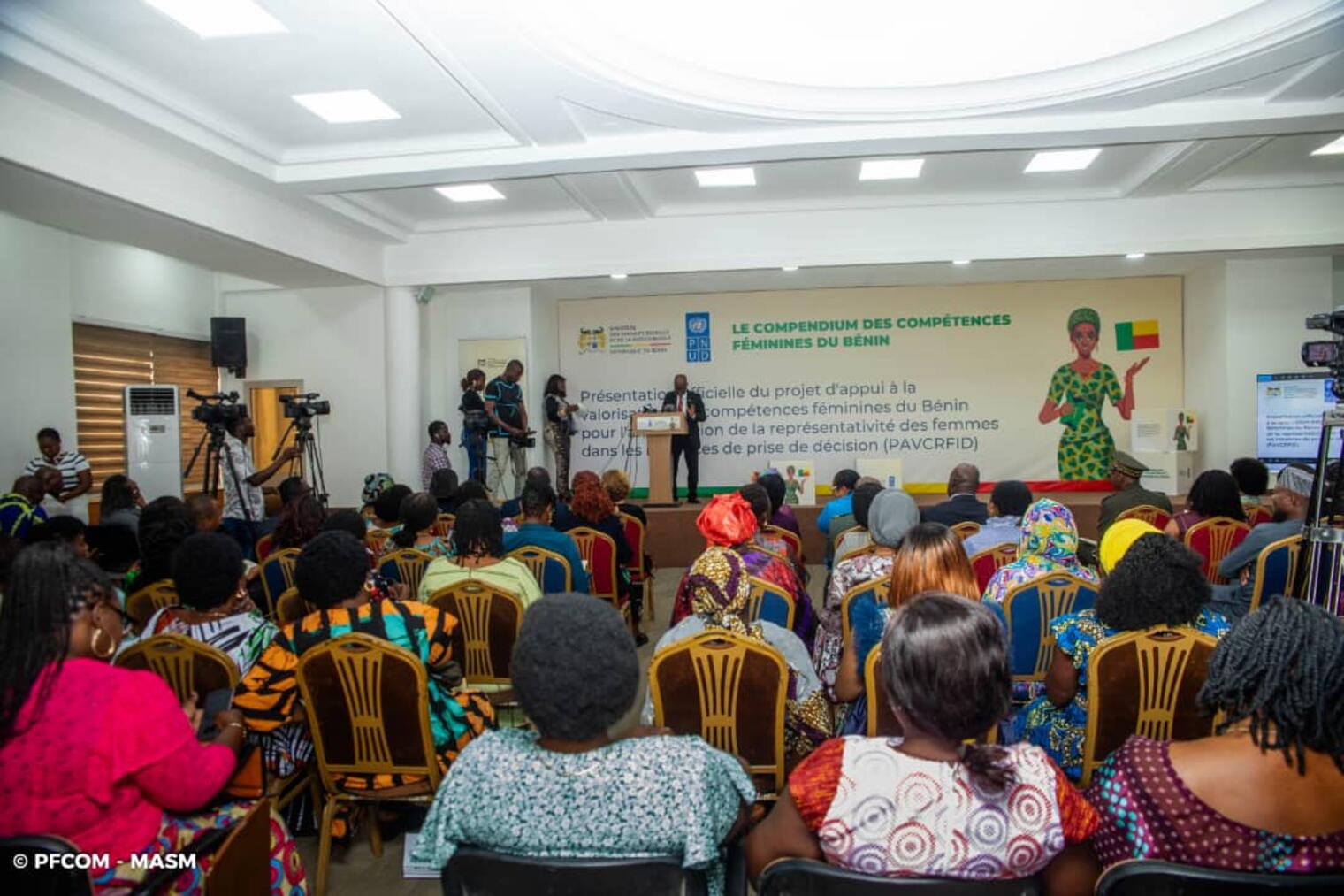 La salle de conférence de la Chambre de Commerce et d’Industrie du Bénin a accueilli, le mardi 24 février 2026, la cérémonie officielle de présentation du Projet d’Appui à la Valorisation des Compétences Féminines du Bénin (PAVCRFID). Placée sous la présidence effective de Madame Véronique TOGNIFODE, Ministre des Affaires Sociales et de la Microfinance, la rencontre a réuni députés à l’Assemblée nationale, Directeurs généraux, autorités administratives, partenaires techniques et financiers, organisations de la société civile ainsi que de nombreuses femmes leaders.